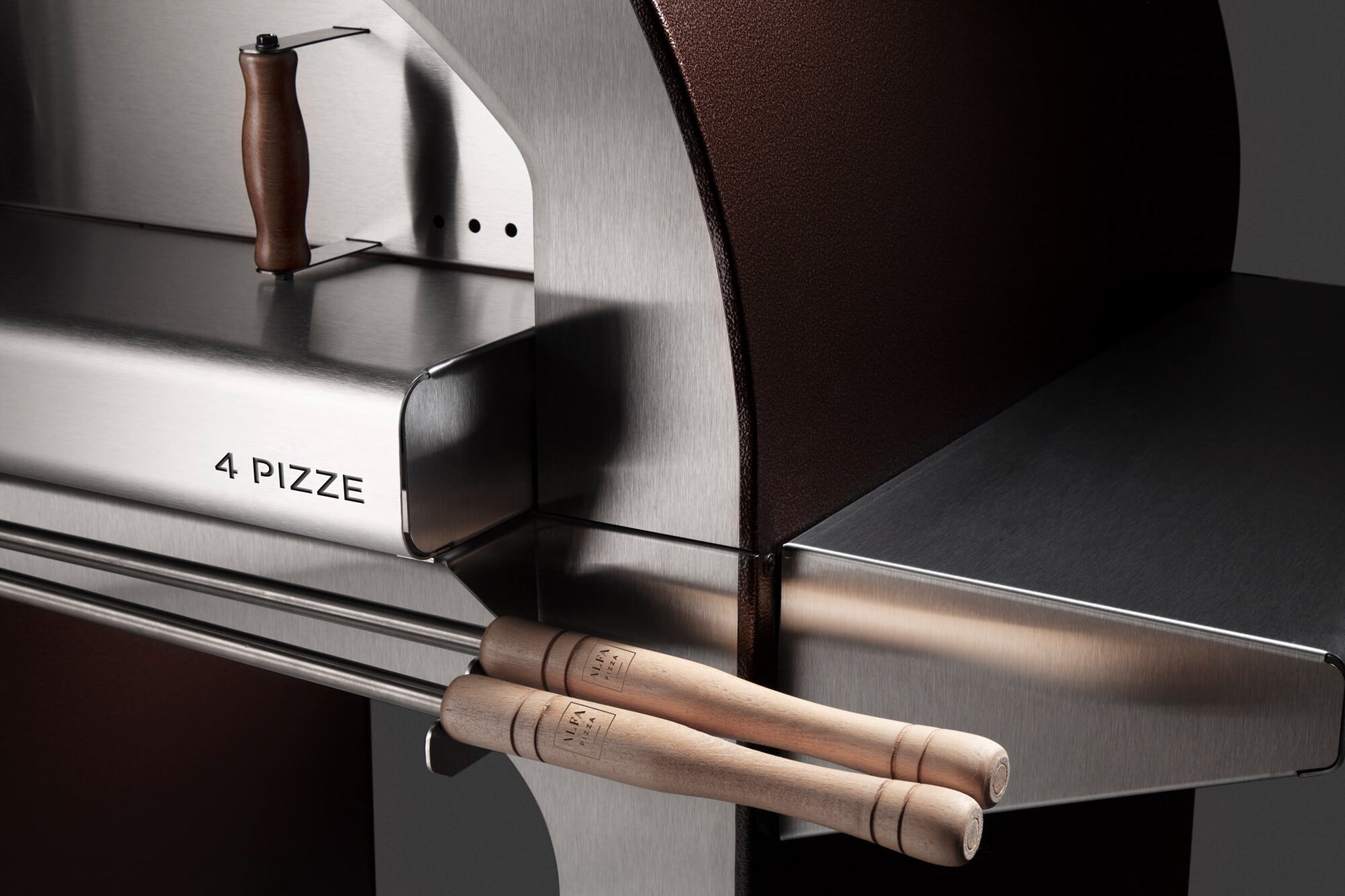The side shelves’ size is designed to not only enhance the 4 Pizze oven’s design, but to conveniently accommodate the necessary preparation and cooking tools.