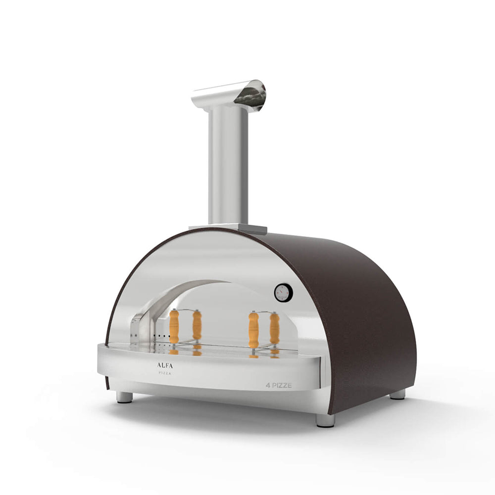 4 Pizze – A wood-fired oven made for gardens and families, meets practicality with built-in lateral shelves and a peel holder.