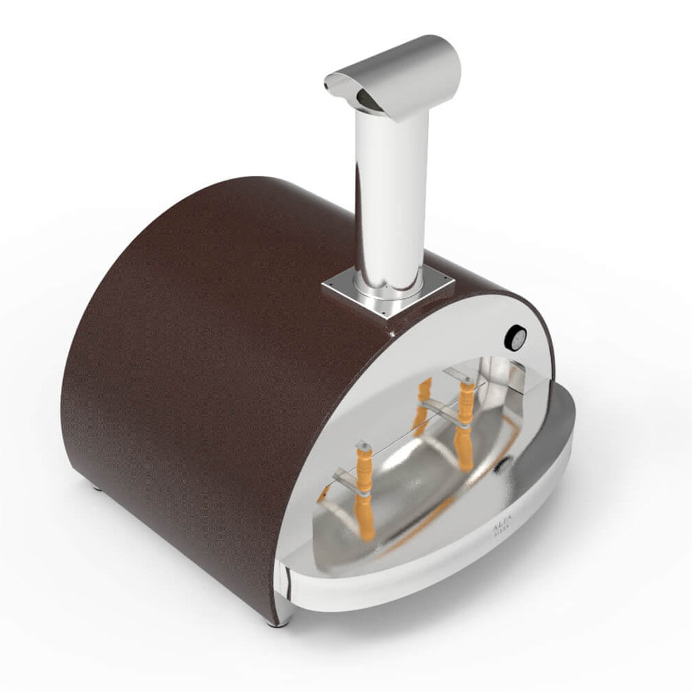 4 Pizze is available in two colours: copper and grey without base and copper and red (with base).