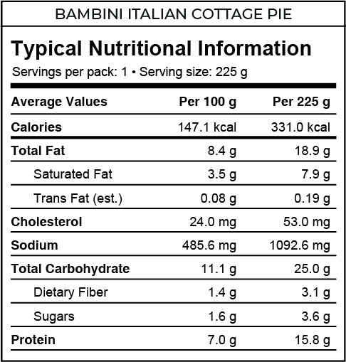 A family favourite mix of topside beef mince and veggies, topped with creamy potato mash. Easy to heat, easy for your bambini to enjoy.